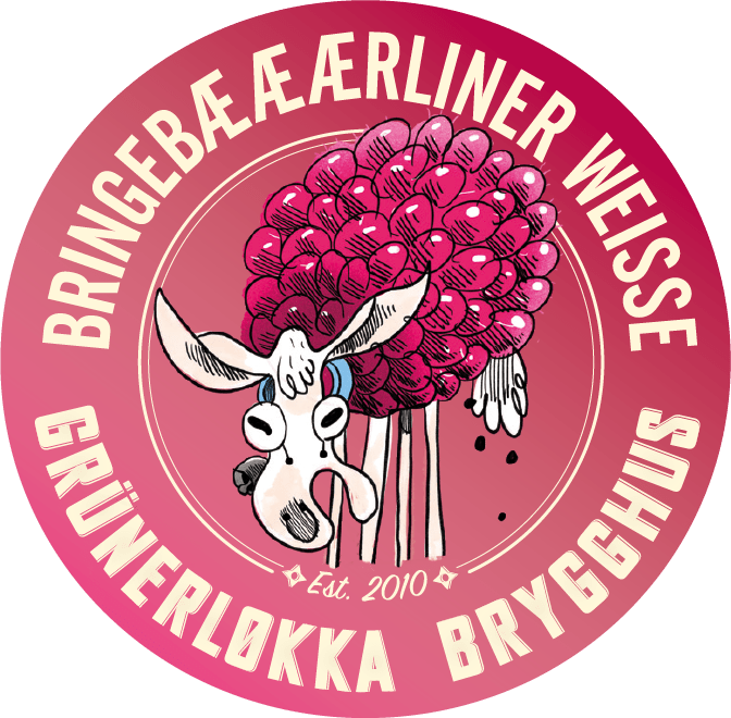 Berliner Weisse med bringebær. Ølet er friskt, syrlig og lett, med fersk smak og farge av bringebær.